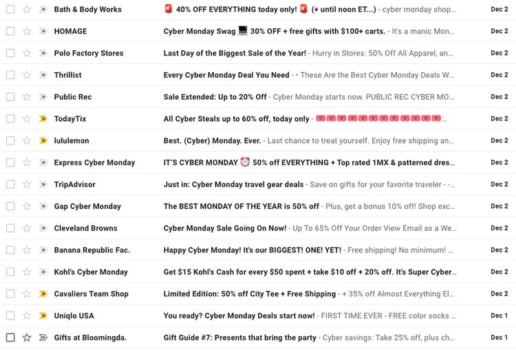 That's where PostPilot comes in. CPCs remain jacked up due to holiday competition and your customer's email inboxes look like this: